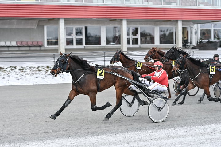 Re Vital (Krister Söderholm/Anne-Mari Fjällström) öppnade bra från tillägg och hamnade som andrahäst i andraspår, vilket blev först utvändigt efter ett ledarskifte vid halvvarvspasseringen. Klev fram och utmanade ledaren i slutsvängen. Kopplade greppet redan 150 kvar och gick undan till säker seger.