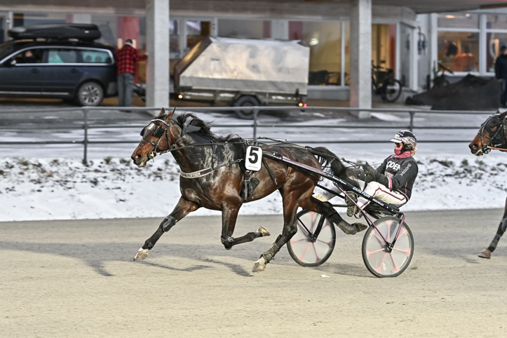 The Oak L.A. (Jenny Engfors/Hanna Olofsson) var med som fjärde häst. Gick ut som första häst i andraspår 1300 kvar. Pressade sig till ledningen på sista långsidan och höll emot motståndet hela vägen hem.