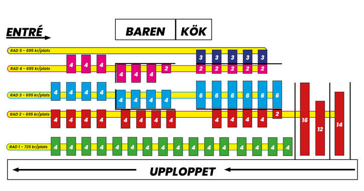 Rad 1 kostar 725 kr/plats.