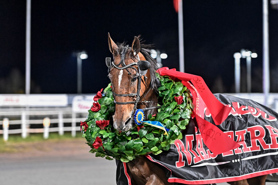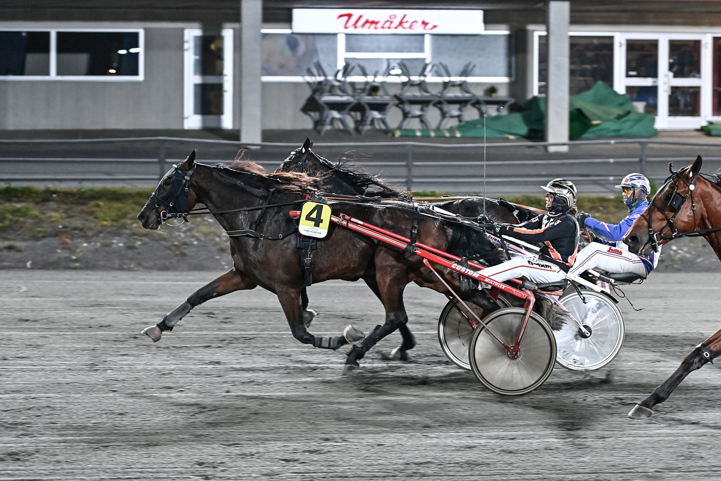 Mellby Don Juan (Per Linderoth/Markus Pihlström) kom till start som titelförsvarare i Umåkermästaren. Han fick ett lopp nere i kön, men kunde gå med i rygg på Pinto Bob på sista långsidan. Han var framme som tvåa i slutsvängen, men när Pinto Bob galopperade lämnades Mellby Don Juan ensam och kunde gå undan för att försvara titeln.