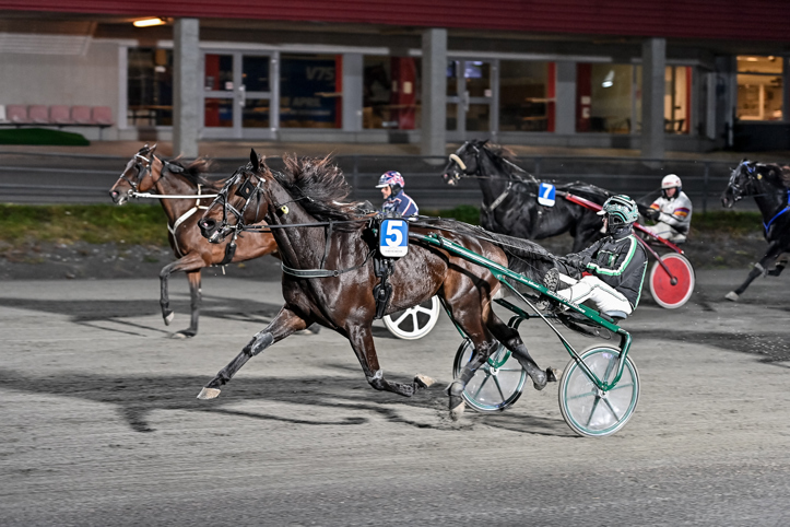 Louis (Robert Bergh) inledde nere i kön från sitt bakspår. Gick på via tredjespår 1200 kvar för att landa utvändigt ledaren varvet kvar. Pressade ledaren och kopplade greppet inne på upploppet. Stark insats.
