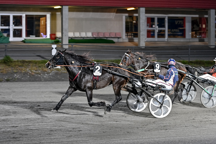 Järvsö Nilsingemar (Micael Melander/Tiina Koskinen) inledde som andra häst, men valde efter ett halvvarv att ta positionen utvändigt ledaren. Kunde inte försvara sig när Vännfors Stjärna kom sköljandes på bortre lång, men kom tillbaka när ledaren galopperade på upploppet. Järvsö Nilsingemar försvarade sedan ledningen hela vägen hem.