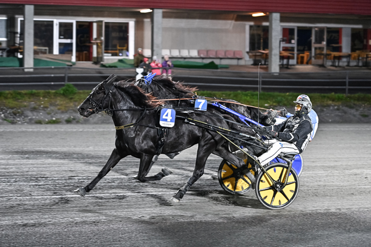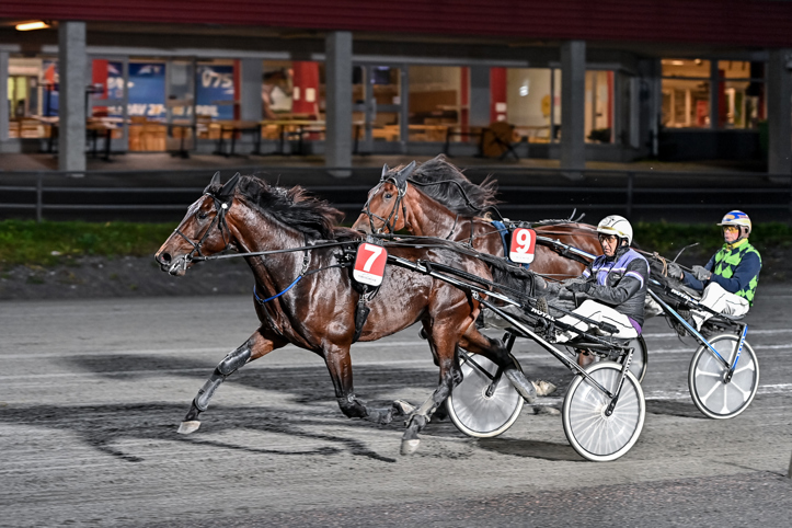 Vännfors Grynet (Ove A Lindqvist/Mats Gällerstedt) låg med som fjärde häst. Gick ut i andraspår 650 kvar och drogs fram på bortre långsidan, men fick ta position utvändigt ledande stallkamraten Guli Kajsa under sista halvvarvet. Inne på upploppet kopplades segergreppet och det blev en stalldubbel för Mats Gällerstedt!