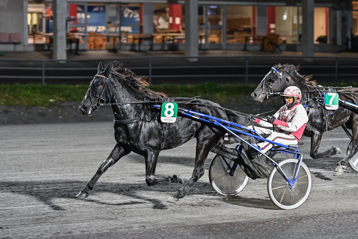 Nemesia Boko (Robert Dunder) avslutade fältet som fjärde häst inledningsvis. Tog andra utvändigt med dryga varvet kvar. Spurtade vasst över upploppet och hann fånga in ledande Käraste Sisu kort före mål.