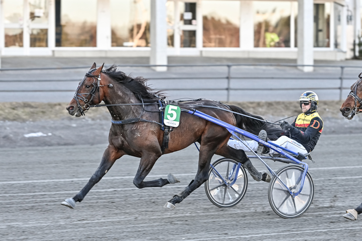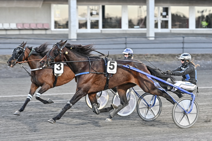 Dream Weaver (Tamara Skutnabb/Jill Ivarsson) inledde i kön, vilket blev tredje utvändigt när fältet formerat sig. Gick på i tredjespår 300 kvar och avslutade vasst. Kort före mål kopplades greppet till knapp seger.