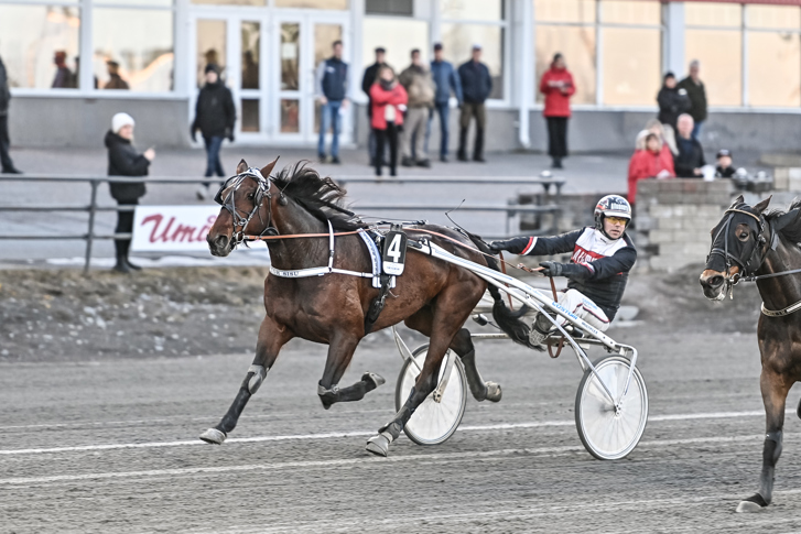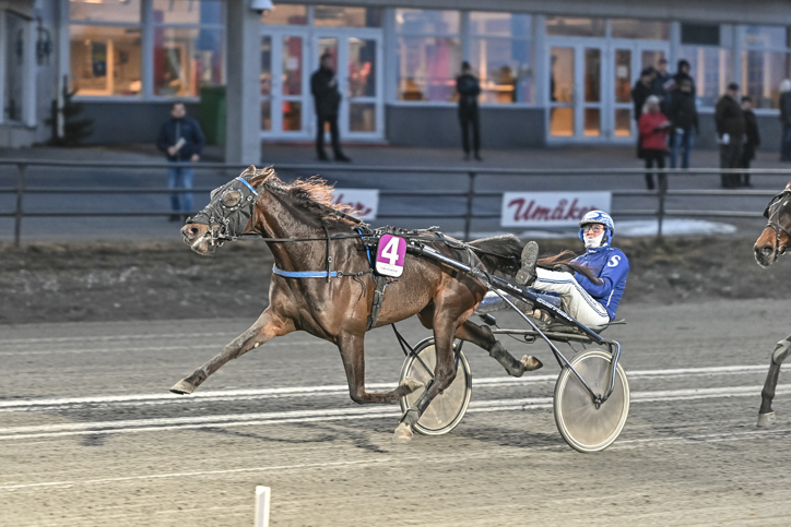 Lundåsens Teknik (Martin Lundahl) hamnade nere i kön från sina dubbla tillägg. Gick på 1300 kvar i tredjespår och bjöds på en rygg 1200 kvar. Gnuggade på och fick det inte riktigt att bita på långsidan, men ut ur slutsvängen kom han tillbaka starkt in på upploppet. Han började schabbla lite med travet, men höll tekniken rätt och kunde sedan kriga till sig segern.