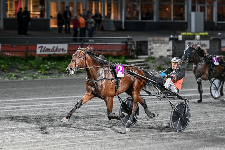 Global Easy Rider (Olle Wäjersten/Daniel Wäjersten) inledde som andra häst i andraspår, men 1500 kvar blev det tredje utvändigt. 1200 kvar gick de på i tredjespår och fick tugga sig framåt för att landa utvändigt ledaren 600 kvar. De pressade på ledaren och kunde koppla greppet när de svängde in på upploppet.