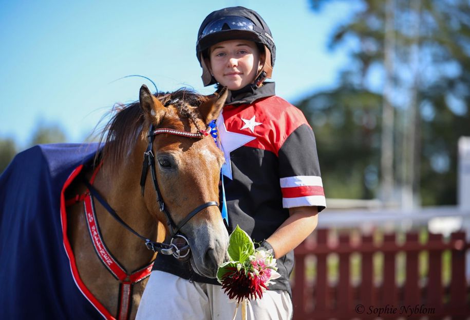 Dagen avlutades med en Umåkerseger i sista loppet, ett monté lopp för kategori b-ponnyer. Där segrade Vizzard Wee (Alexandra K Strandberg) med ryttaren Tindra Olsson från Hagmyren. Segermagrinalen skrevs till många längder och segertiden blev 2.04,7g, stort grattis!