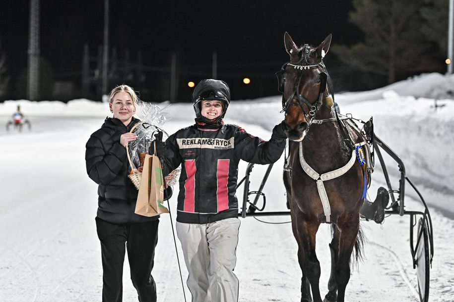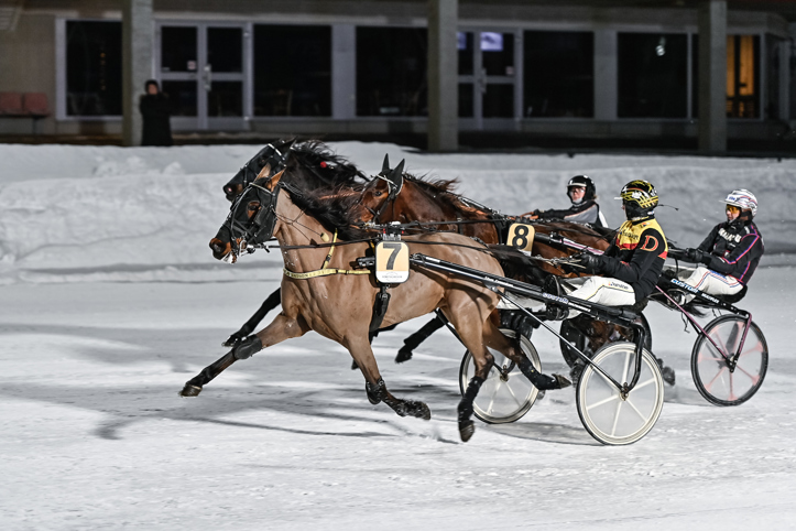 Tekno Tora (Mika Forss/Emma Jonsson) öppnade bra och kunde köras till ledningen efter dryga halvvarvet. Drog i någon längds ledning. Blev utmanad när de var inne på upploppet och hon såg slagen ut, men kunde kontra tillbaka och segra.