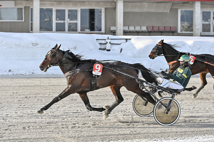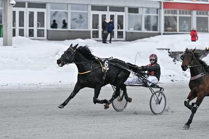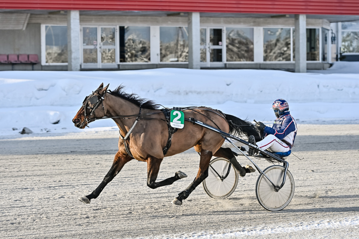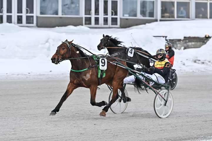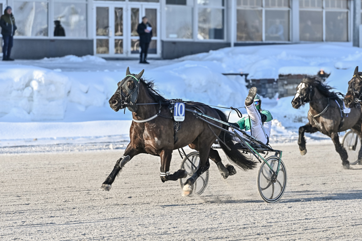 Guli Kajsa (Mats Gällerstedt) inledde i fjärde utvändigt från sitt bakspår, vilket sedan blev tredje utvändigt. Smögs fram i ryggar under slutrundan och kunde vrida på i fjärdespår i slutsvängen. Kom snabbt och kunde spurta till en enkel seger på bra sätt i årsdebuten. Tapperhetsmedaljer till Tåga Storm som repareade en startgalopp och Eldar som kämpade bra utvändigt ledaren.