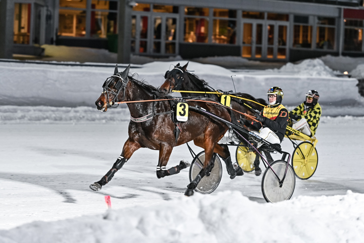 Magical Survivor (Mats E Djuse/Hanna Olofsson) inledde som andra häst på innerspår. Kördes till ledningen med dryga varvet kvar. Höll tempot uppe. Blev utmanad av Jon Snow Pellini, men kunde hålla motståndet på avstånd hela vägen hem. Andra raka och fortsatt obesegrad.