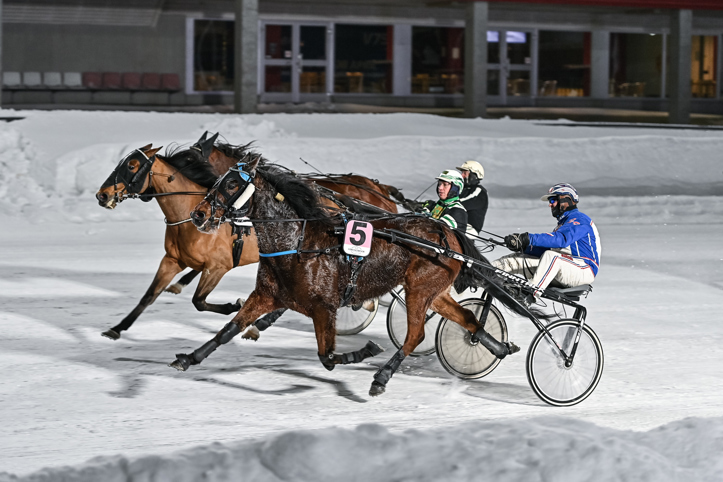 Saga Ray (Mika Forss/Kari Lehtonen) fick loppet i andra utvändigt. Kunde vänta till 500 kvar med att sätta in attacken. Gick en bra slutsväng och kunde koppla greppet kort före mål. Andra raka.