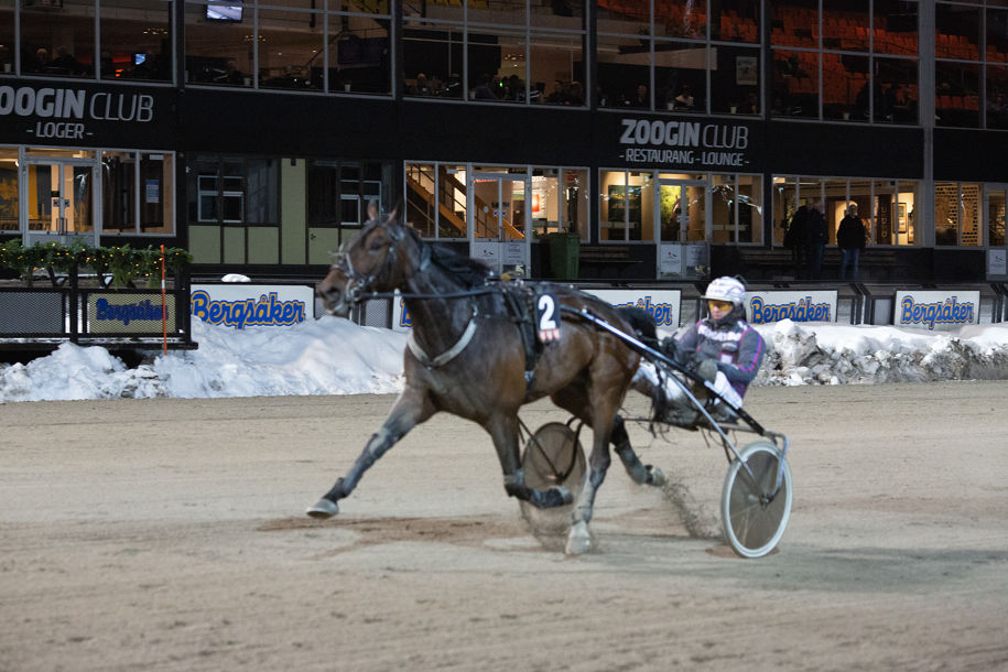 Flap Setting (Ulf Ohlsson/Malin Åberg) öppnade bra och inledde i rygg på ledaren, men i första sväng blev det tredje invändigt efter ett ledarskifte. Det såg länge "tjockt ut" runt honom, men i sista sväng uppenbarade sig luckan. Inne på upploppet kom attacken i tredjespår och Flap Setting kunde koppla greppet 50 kvar till säker seger med två längder på 1.15,2a/2140m. Det var 60 000 kronor i förstapris till ägarna i Skogsro Konsult&Utveckling AB i Umeå.