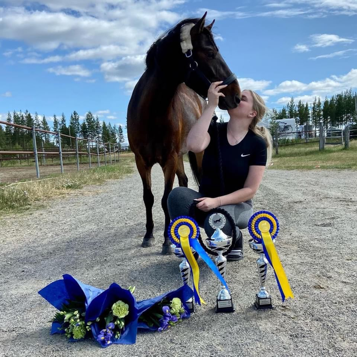 Förra veckan var det PonnyElitVeckan på Wången, en härlig och lärorig vecka för fjolårets segerrikaste ponnykuskar från respektive bana. Veckan avslutades med dubbeltrav på Östersund. Årets deltagare från Umåker var ingen mindre än Ella Ersson Svedelius, hon startade även båda dagarna på Östersund med faster Alexandras Vizzard Wee. Det ledde till en seger, en andraplats och en tredjeplats, wow! Vann gjorde dem under lördagens tävlingar i loppet ”Lilla Diamanthoven”. De startade längst bak i fältet men trots sina tillägg kunde de runda alla de elva andra ekipagen. Segertiden skrevs till det nya superrekordet 1.44,9g och vann gjorde dem med en nos. Stort grattis till fina prestationer!
