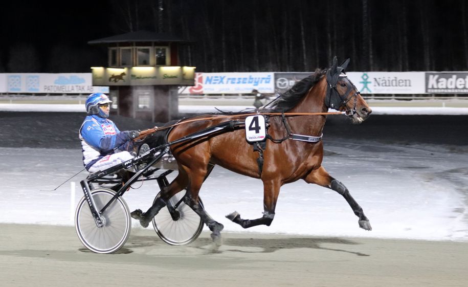 Nymphe d'Inverne (Robert Skoglund/Annbritt Johansson) startade från bakspår och kom iväg mitt i fältet som femte häst, vilket blev tredje utvändigt när fältet formerat sig. Skoglund vilade inte, utan tog ett initiativ drygt 1,5 varv från mål och kunde sedan pressa sig till ledningen knappa 1300 kvar. De fick inte sitta ifred, utan på bortre långsidan blev de utmanade och kunde inte försvara täten med 400 kvar. Dock galopperade ledaren i utgången av slutsvängen och Nymphe d'Inverne kunde återta kommandot och hålla undan till segern med en längd tillgodo. Segertiden blev 1.17,9/2140m och det var 10 000 kronor i förstapris till ägaren Lars Åkesson i Örträsk. I samma lopp avslutade Fly Bird Fly (Joakim Rubertsson/Marita Oskarsson) positivt till tredjeplatsen.