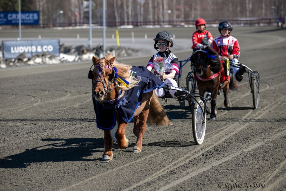 Snorkfrööken (Lo Sallinen/Linda L Sallinen) slog till med en dubbelseger när de även vann dagens femte lopp. Ekipaget hade bra fart redan från start och lyckades hämta in sina tillägg och med ca 800m kvar tog de över ledningen, där kunde de ohotat defilera in i mål. Segertiden skrevs till 2.24,6g, dubbel grattis!