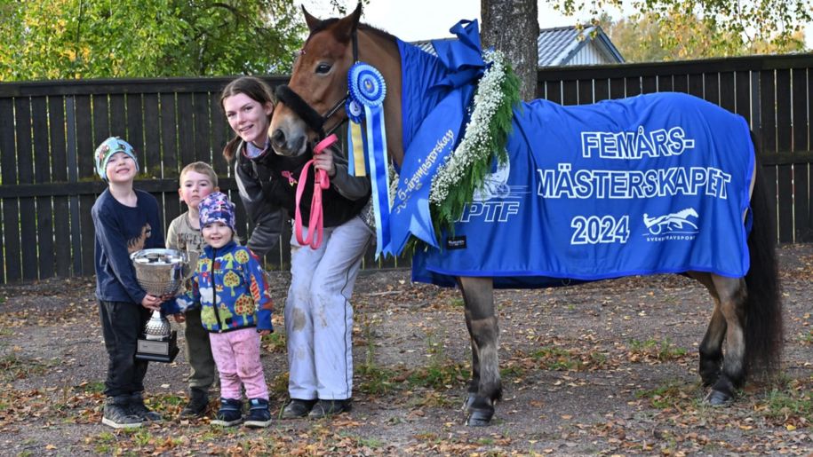 Bild: Stenbydal´s Lillja, Ella Ersson Svedelius och hästskötar-gänget
