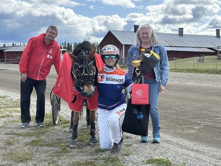 På midsommardagen var det insprängt ponnylopp under Skellefteås midsommartrav. Där segrade Trolldalens Jax och Sandra Demby. Trots sina många tillägg så kunde de ta in på täten meter för meter. In i sista sväng var de i kapp tätklungan och kunde på upploppet ta över ledningen och köra till en säker seger. Ekipaget van slutligen med 5 längder och segertiden skrevs till 2.02,5g. Stort grattis till en fin prestation och seger i kransloppet Lilla Midsommarkransen 2025!