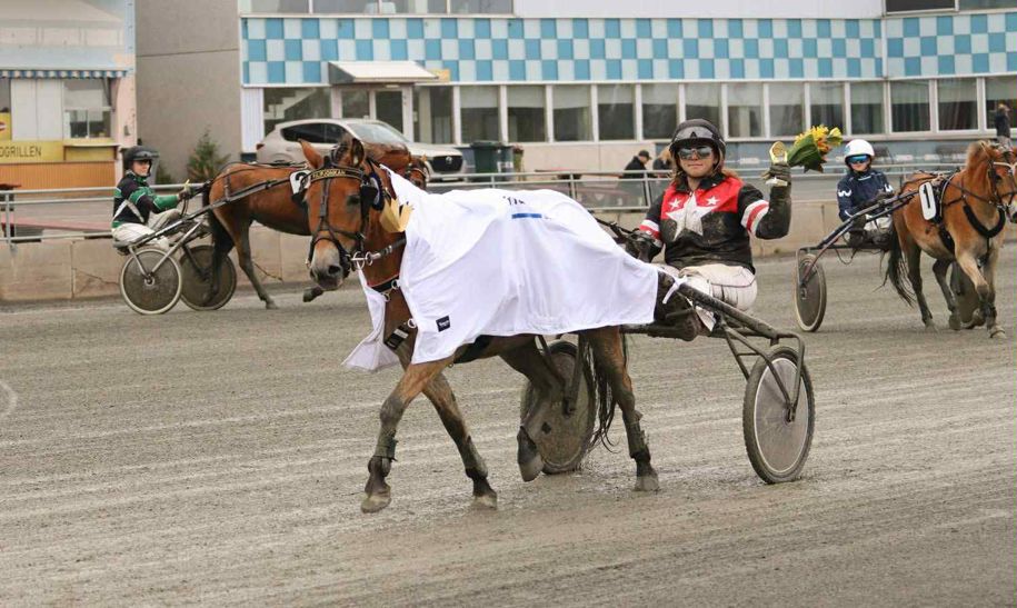 I lopp fem var det Fiilifjonkan och Lo Sallinen som vann. De startade längst bak i fältet med sina 120 meters tillägg och började jaga ikapp direkt i starten. De passerade häst för häst och i sista sväng kunde de ta över ledningen och köra ifrån till en säker seger. Vann gjorde de på tiden 2.22,9g och segermarginalen skrevs till många längder. Stort grattis!