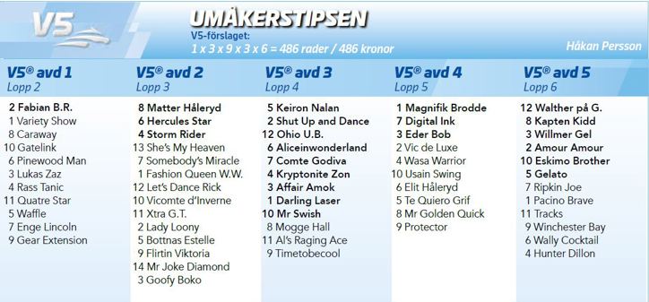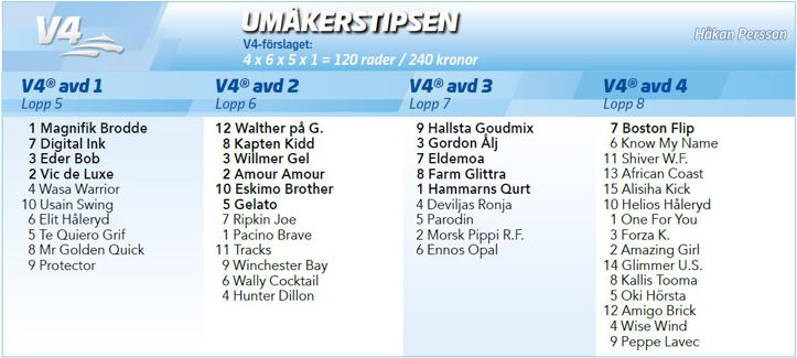 Firma Kytölä/Forss även under denna rubrik. Storm Rider har visat fina fartresurser, men ställer också till det för sig ibland. Kan Mika hålla honom på rätt köl och ”rida ut stormen” kan det blåsa i kuponghögen också. Kolla halvraden från Bergsåker, lördag också.