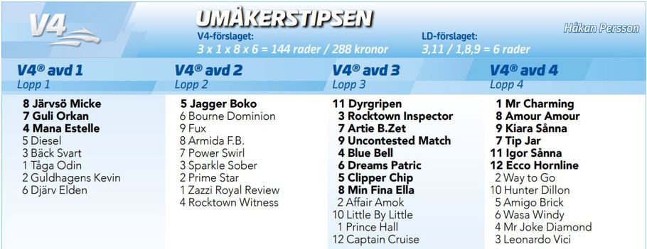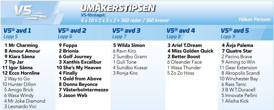 ”Lägsta varma” känns vidöppet! En intressant debut i ny regi gör Golf Journey. Han var näst senast favoritspelad på Solvalla där han blev fyra. Den gången skrällvann Phoenix Photo som gått bra efter det. Golf Journey kördes offensivt, men kunde inte stå emot på upploppet. Sedan gick han 18,0 på Solvalla i starten efter en månad senare.