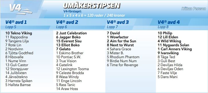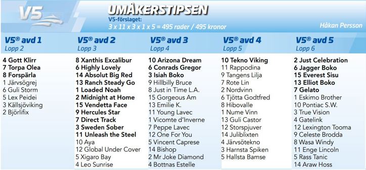 Femåringen imponerade stort senast när han krossade motståndet på Dannero. Han kommer här med två raka segrar, båda tagna över dagens långa distans. Tekno Viking borde vara svårslagen, om han går felfritt även denna gång.