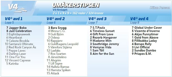 Bara Snygg blandar och ger i sina prestationer, men hon var riktigt bra vid senaste besöket på Umåker. Hon visade fina takter när hon fick lucka från ledarryggen i slutsvängen. På upploppet kopplades per omgående greppet till säker seger. Det är ett öppet lopp, men på V4-kupongen blir det chansspik.