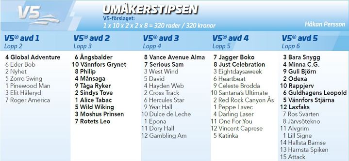 Global Adventure kommer ut i årsdebut och det är enda hästen som Svante Båth skickar upp till Umåker ikväll. Den nyblivne femåringen har ett starkt ”unghäst-CV” med segrar i Svampen och Derbykval (fyra i Derbyfinalen), samt andraplatser i Breeders’ Crown och E3. Svårt att veta vart han står, men Båth brukar ha hästarna väl förberedda.