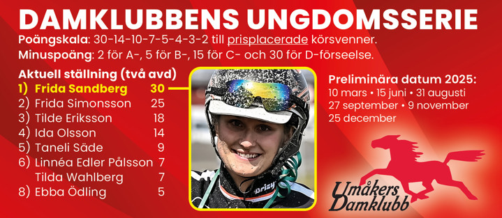 Poängberäkning: 5p för seger i försöket. 4p för att vara prisplacerad 2:a-3:a i försöket. 3p för att vara prisplacerad 4:a-7:a i försöket. 2p för att vara oplacerad och fullföljt (ej diskvalificerad) i försöket.
